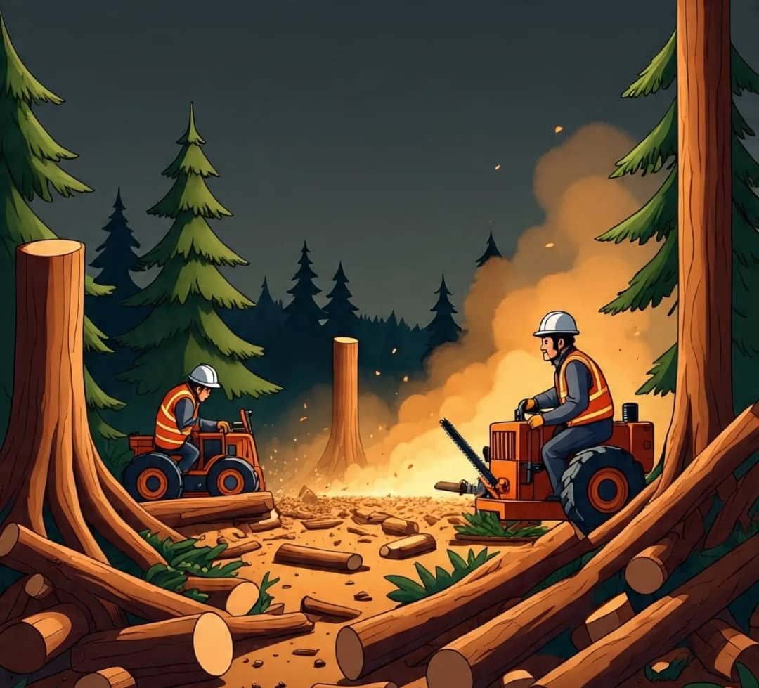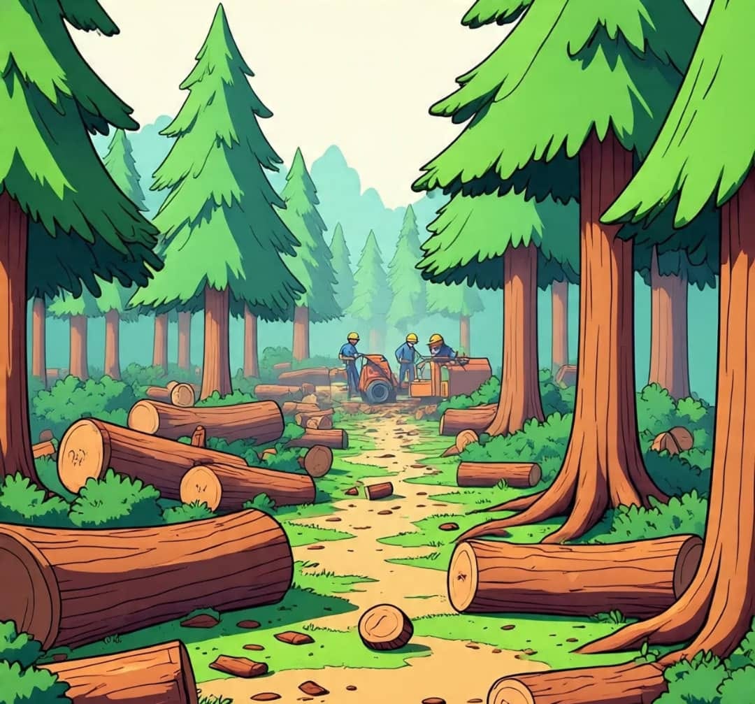 Logging's ravages, a blatant spree.